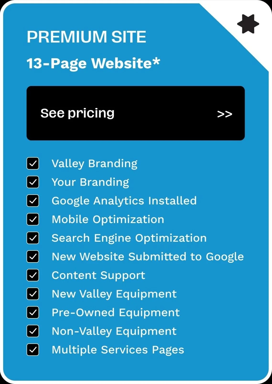 Grow your dealership with a powerful branded website—optimized for Google, mobile-friendly, and designed to showcase your Valley equipment while driving more leads and sales.